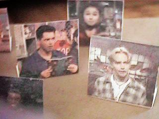 - The Playing Pieces : Go to a Roundhouse web page (our links page may come in handy) and find pictures of as many cast members as you want. Meredith used all 19, plus a picture of the full band, to get a total of 20 pictures. She put them all in a publishing program, made them all the same size, and printed them on oak tag. If you don't have a program you can use for this, simply print out the pictures on oak tag and cut them out. Leave some space under the picture, and fold it up so that your pieces can stand.
